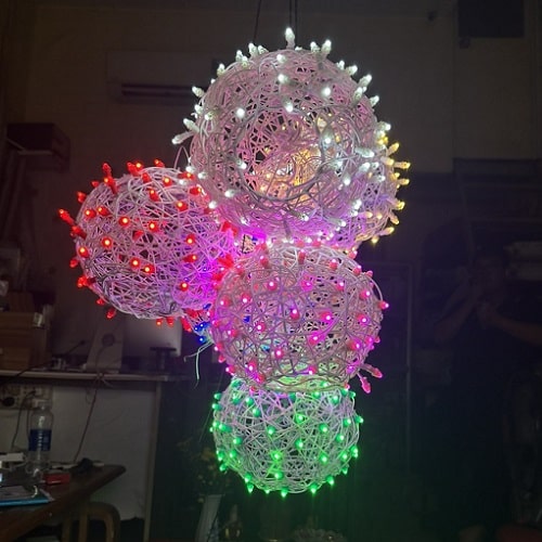 Đèn Led cầu mây D200 6 màu trang trí có tên gọi chung là đèn led cầu mây, một sản phẩm đang làm mưa làm gió mùa trang trí noel, lễ tết năm 2023 – 2024. Mẫu đèn cầu mây sử dụng bóng đúc 12v cho tuổi thọ trên 5 năm sử dụng, giúp tiết kiệm chi ph1 thay thế bảo dưỡng. Mẫu dây đèn cầu mây là chọn lựa hoàn hảo cho thả cây trang trí, trang trí ban công, hành lang ngoài trời….